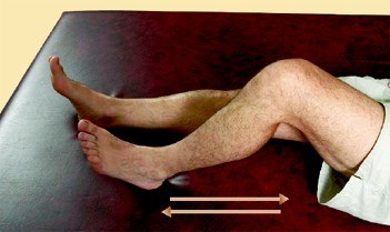 Heel slides: Flex your hip and knee. Return knee to the straight position.