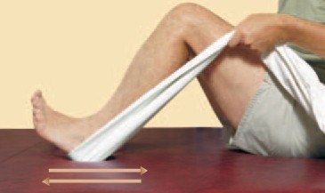Knee flexion stretch: Place a towel under your heel. Pull your knee towards your chest. Hold your knee in this flexed position for 15-20 seconds. Return knee to the straight position.